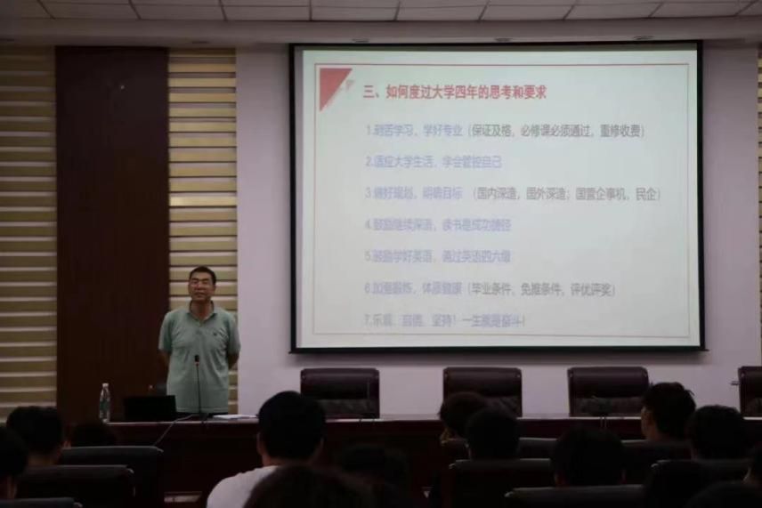 9月8日下午学院院长张光存为同学们进行了一场深刻而精彩的讲座。同时也向各位大一新生介绍了pg游戏的人才培养模式与pg游戏特色专业与特色优势。他勉励同学们要树立远大理想,厚植爱国情怀,练就过硬本领,不断彰显青春风采,贡献青春力量。
