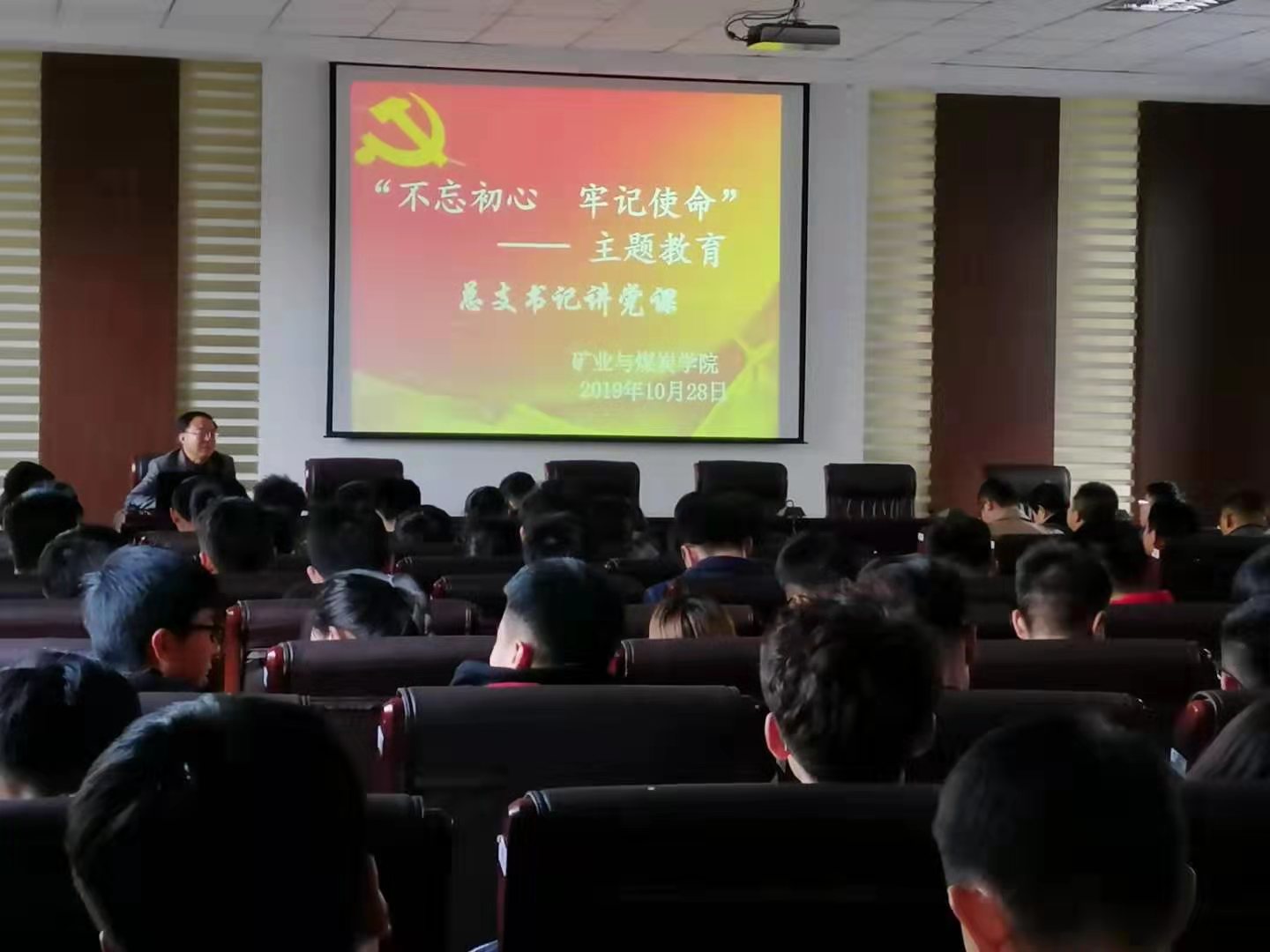2019年10月28日下午,pg游戏电子模拟器党总支书记王建国为学院全体教师和学生党员在实验实训楼二楼会议室进行“不忘初心、牢记使命”主题教育总支书记讲党课。党课以“守教育报国初心,担立德树人使命,做三全育人最坚定的传播者、践行者”为主题,围绕以下内容展开讲解: