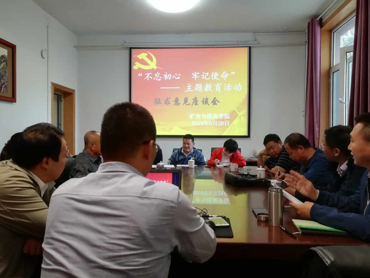 9月28日15:00,pg游戏电子模拟器党总支中心组在学院办公楼102开展“不忘初心、牢记使命”主题教育之教师代表座谈会。