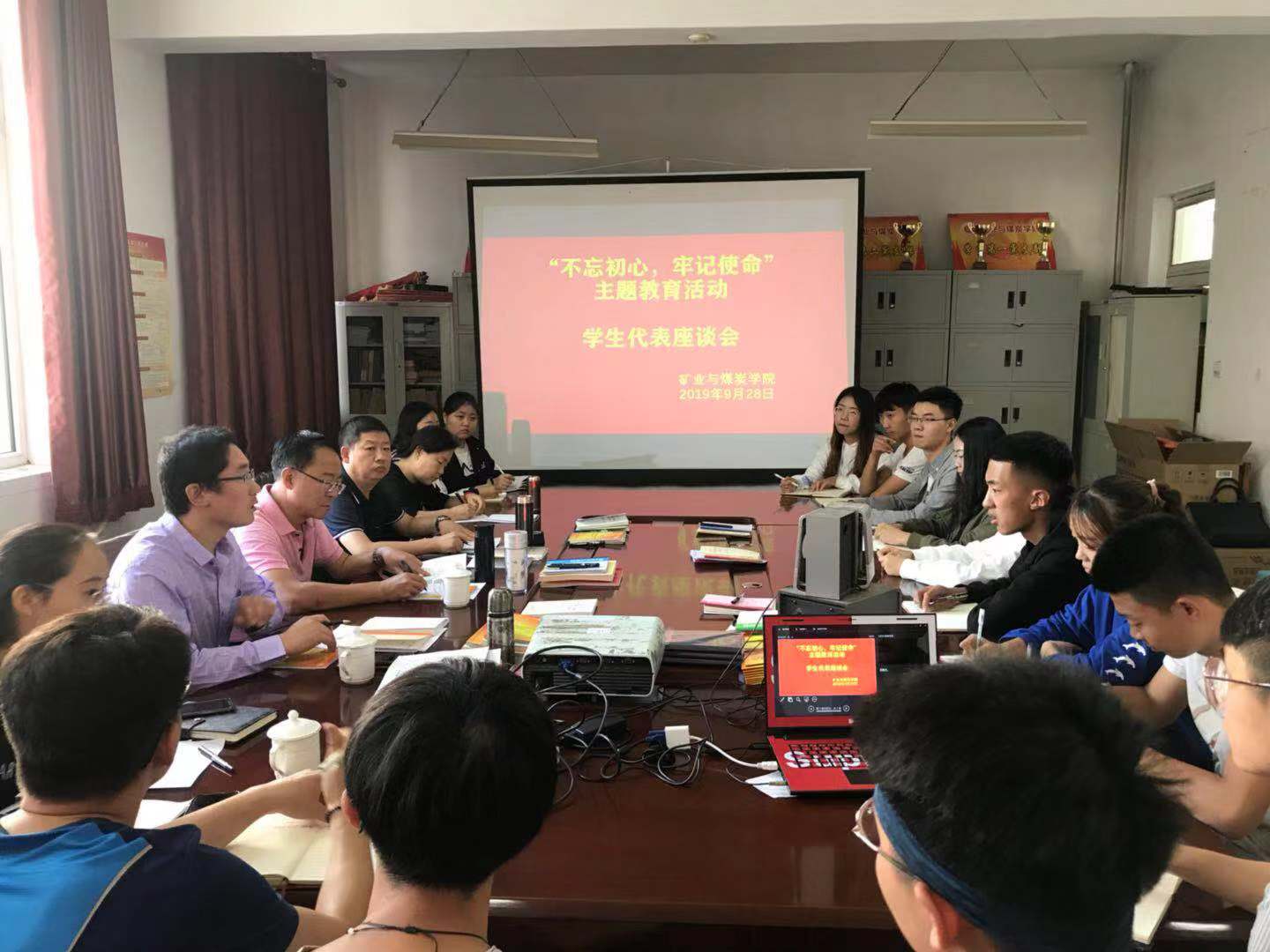 9月28日15:00,pg游戏电子模拟器党总支中心组在临曦楼204党员之家开展“不忘初心 牢记使命”主题教育之学生座谈会。