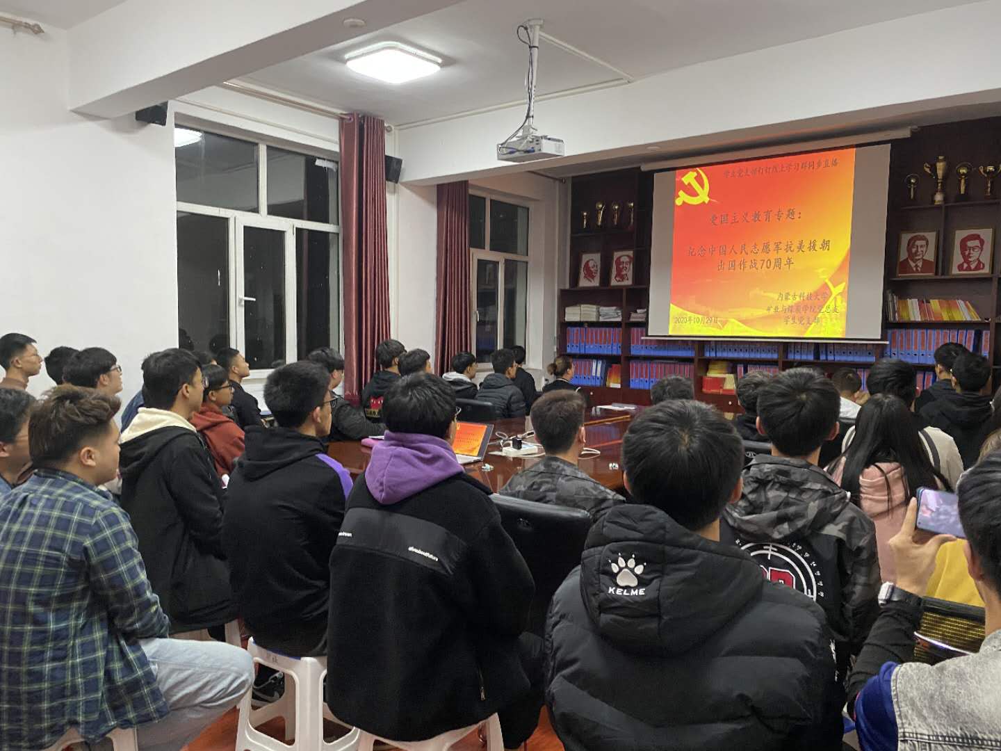 为纪念中国人民志愿军抗美援朝出国作战70周年,pg游戏电子模拟器党总支于2020年10月29日晚上19:00,在临曦楼二楼党员之家线上线下同步开展专题理论学习活动。本次学习内容是爱国主义教育专题:观看《纪念中国人民志愿军抗美援朝出国作战70周年》视频。