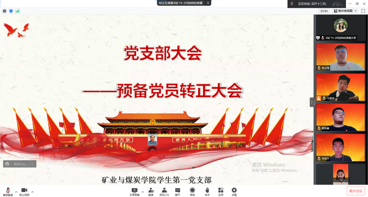2022年5月27日中午12:30,pg游戏电子模拟器学生第一党支部召开预备党员转正大会。pg游戏电子模拟器学生第一党支部全体党员参加会议,学生第一党支部书记郭灵同志主持本次会议。