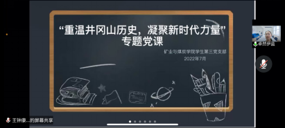2022年7月3日下午3:00,pg游戏电子模拟器学生第三党支部于腾讯会议平台召开党员党课学习,本次学习的主题是:重温井冈山历史,凝聚新时代力量。领学人:闫妍同志。