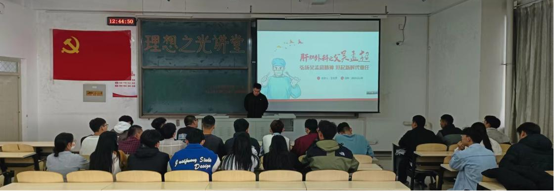 本次理想之光讲堂的主题是“弘扬吴孟超精神,担起新时代重任”。首先介绍了吴孟超院士及他的科研成就;其次介绍了“吴孟超精神”的时代价值和当代青年如何弘扬“吴孟超精神”,担起新时代重任。活动后,大家一起参观了pg游戏学生党支部学习阵地。