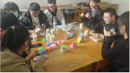 活动现场,同学们选择不同的材料与自己的小伙伴三三两两各自围成一个小圈,全神贯注的制作着他们的作品。
