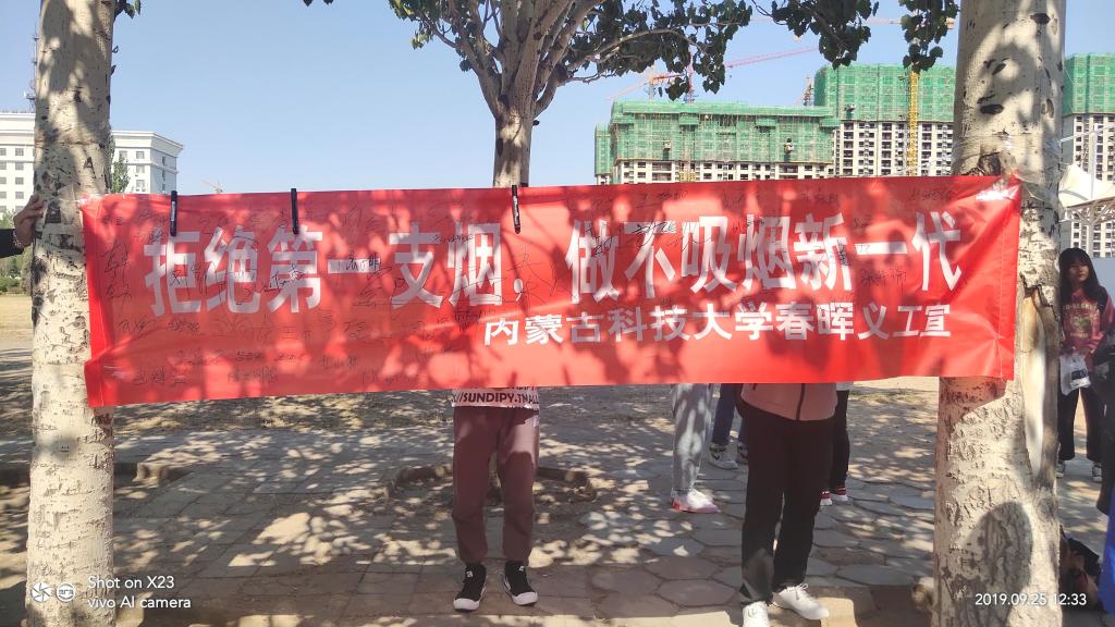 为创造一个洁净、优美的校园环境,2019年9月25日pg游戏电子模拟器春晖义工协会在东校区梅园餐厅门口开展了“不忘初心、牢记使命”为主题的禁烟教育活动。