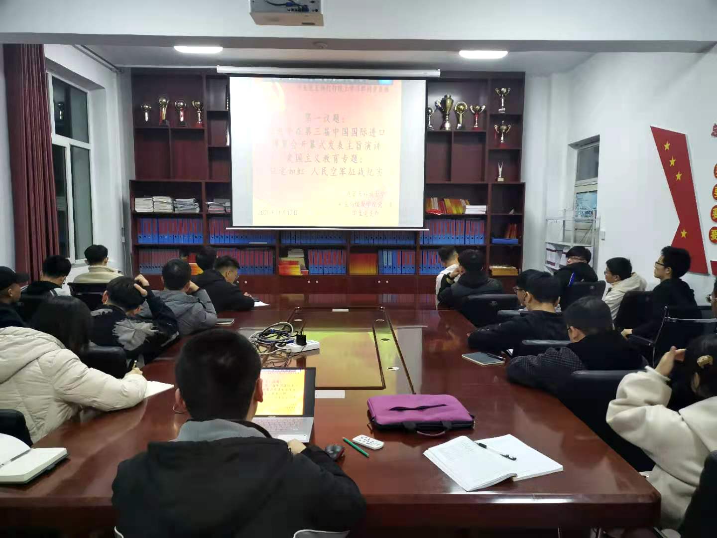 回首人民空军那些刻骨铭心的故事,抒发对人民空军的深厚情义,pg游戏电子模拟器党总支于2020年1112日晚上19:30,在临曦楼二楼党员之家线上线下同步开展专题理论学习活动。本次学习内容是:第一议题:学习习近平在第三届中国国际进口博览会开幕式上发表主旨演讲讲话精神;爱国主义教育专题:观看《征途如虹人民空军征战纪实》视频。