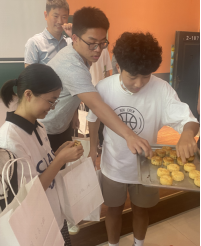 活动现场,学生品尝党员教师手工制作的月饼