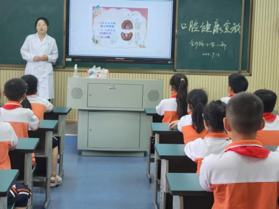 bat365官方网站教师党员走进金沙路小学和中骏蓝湾社区开展口腔义诊志愿服务活动,为小学的小朋友们和社区的居民们提供口腔义诊,免费派发放口腔护理套装。活动现场,党员教师查看他们的口腔健康状况,聆听他们的病史、需求,对提出的口腔问题进行答疑解惑,并耐心细致地讲解相关注意事项,普及健康、保健预防知识,倡导养成健康生活方式,做自己的口腔健康第一责任人。