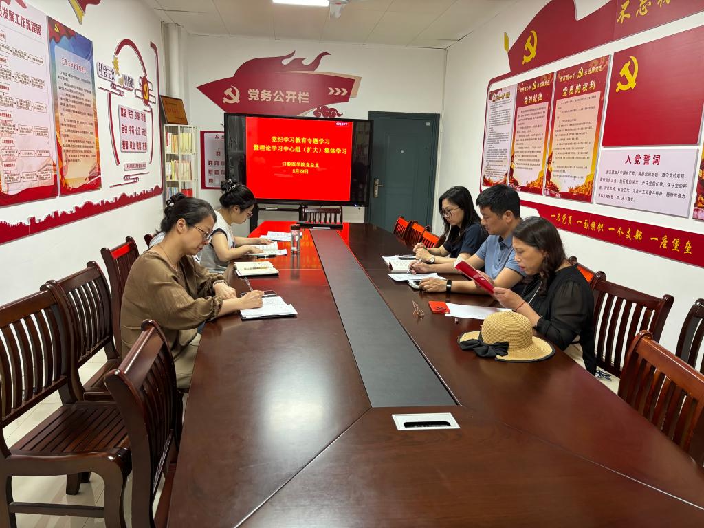 为推动党纪学习教育走深走实,5月29日,bat365官方网站党总支理论学习中心组(扩大)专题学习新修订的《中国共产党纪律处分条例》(以下简称《条例》),学院党总支副书记罗志红主持会议并总结讲话,学院党总支委员、各教研室主任参加会议。