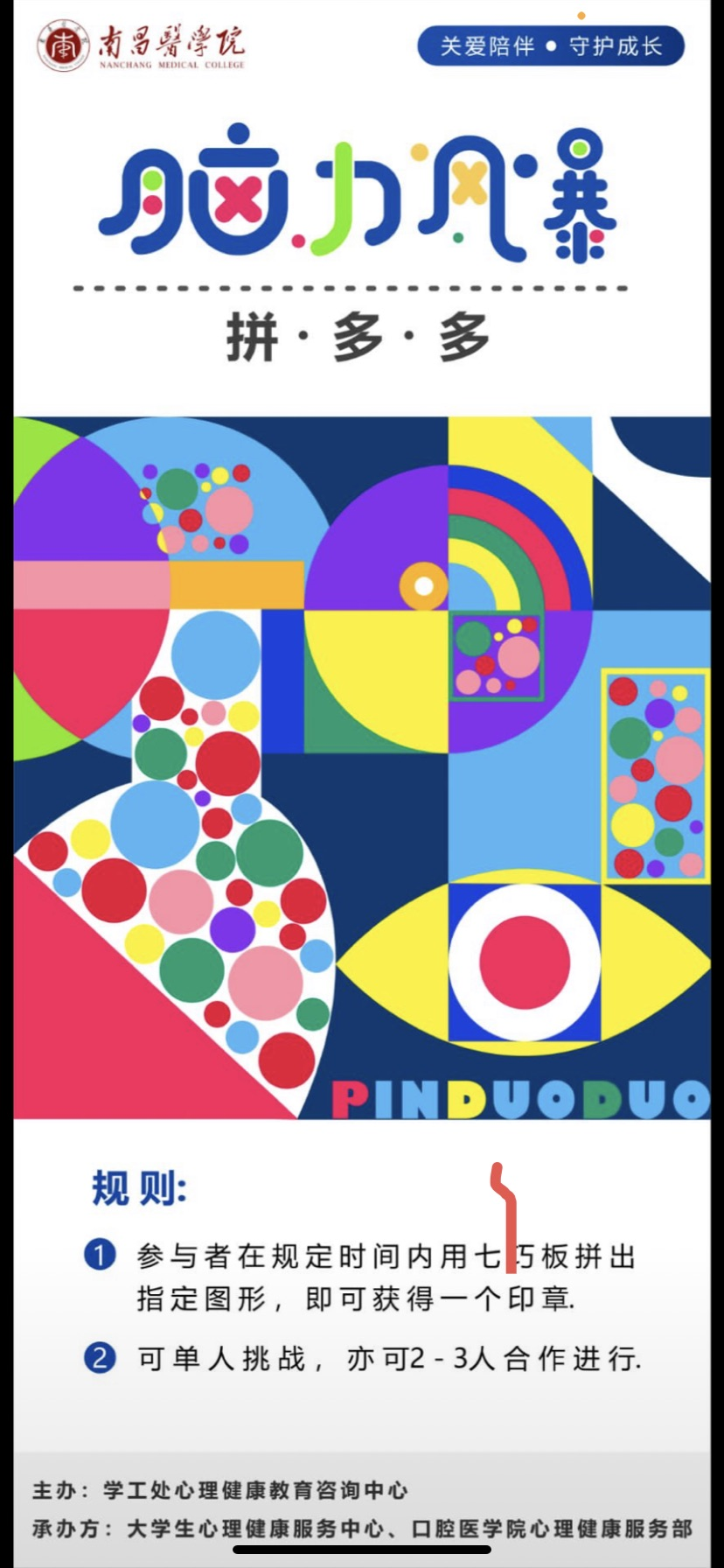 为提升学生心理健康素养,促进学生养成自尊自信、理性平和、积极向上的健康心态,bat365官方网站开展“525心理健康月”系列活动,通过拍摄心理微视频,编排心理情景剧,承办心理游园会:《脑力风暴》环节,设计健康服务部logo,切实增强了学生对心理健康的关注度,帮助学生提升身心素质,塑造理性、平和、健康心态。