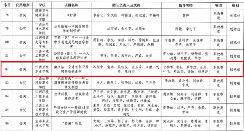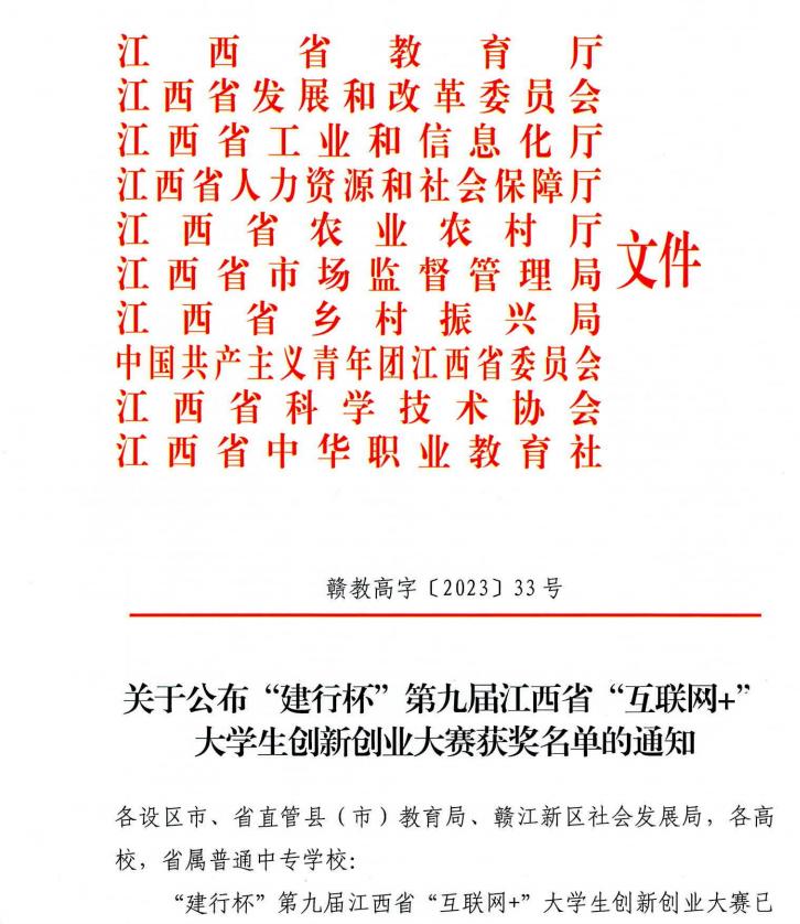 近日,由省教育厅、省发展和改革委员会、省工业和信息化厅、省人力资源和社会保障厅、省农业农村厅、省市场监督管理局、省乡村振兴局、共青团江西省委、省科学技术协会、省中华职业教育社主办的第九届江西省“互联网+”大学生创新创业大赛落下帷幕。bat365官方网站“菌立洁——全球首创牙菌斑高效查杀剂”项目荣获大赛金奖。