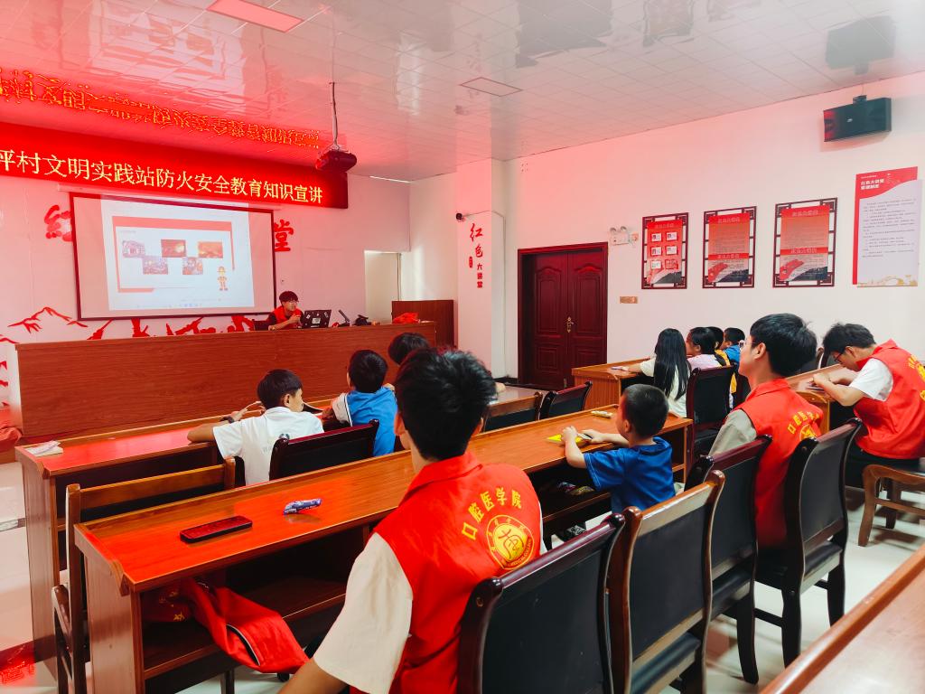 乡村振兴,安全同行。志愿服务队来到当地红色文明实践所为当地青少年开展三防教育(防溺水,防火灾,防诈骗)宣讲,运用真实的案例进行警示教育,介绍如何预防事故的发生,以及事故发生时的自救和互救方法。