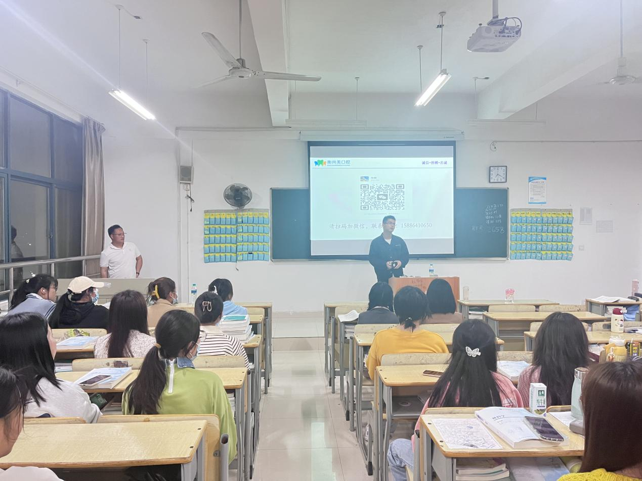 衡尚美口腔始创于2001年,是一家集临床、教学、科研于一体的医疗机构,开设有两家口腔门诊,门诊面积达1800平方米,牙椅30张,拥有医疗技术人员20余名,开设牙齿矫正、种植、口腔综合治疗、美学修复、儿牙等项目。门诊HR向同学们详细介绍了企业品牌文化、公司发展历程等企业相关信息,同时也讲解了企业内部组织架构、招聘的工作岗位、薪资福利、节日福利以及未来的晋升空间等等。