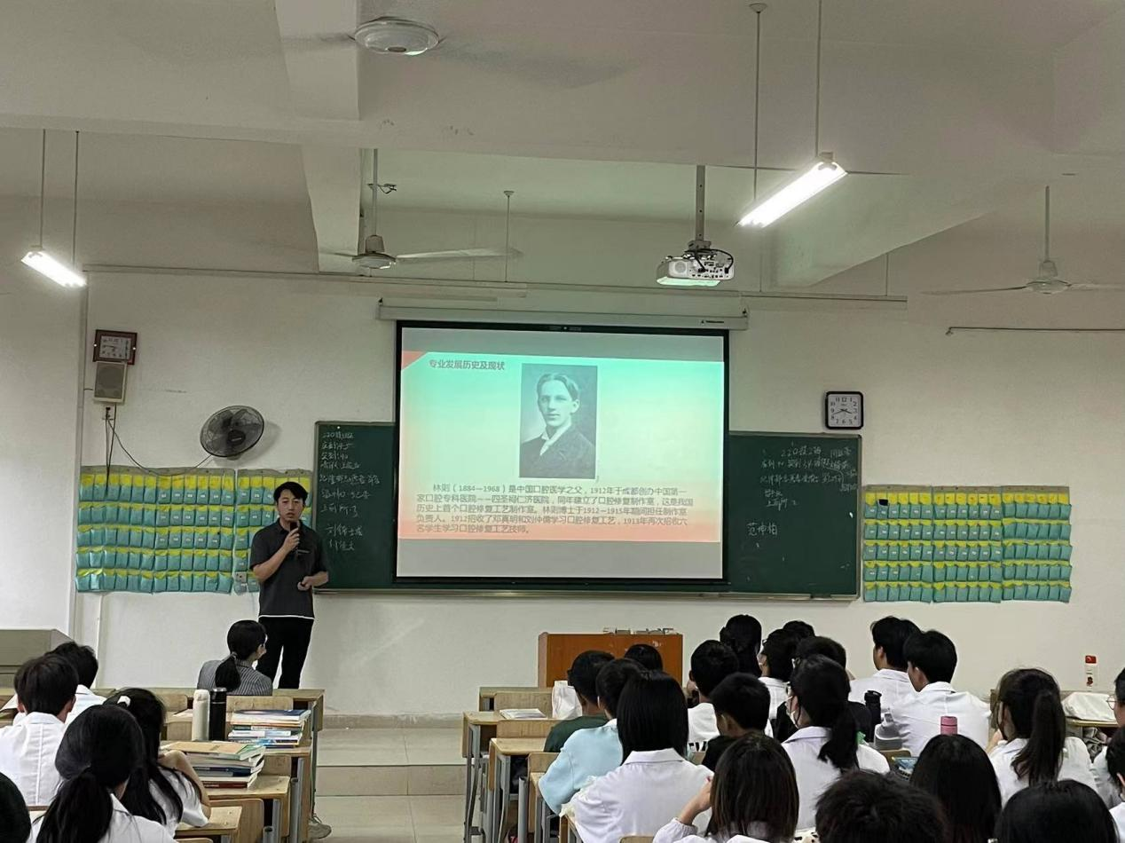 为帮助口腔医学技术专业学生深入了解所学专业,明确未来发展方向,提前做好职业生涯规划,培育良好学风,5月17日下午,bat365官方网站邀请2016级口腔医学技术专业优秀毕业生、高级技师刘长志返校为学生们做专业发展前景及职业规划宣讲。bat365官方网站部分教师及22级口腔医学技术全体学生参加了宣讲。