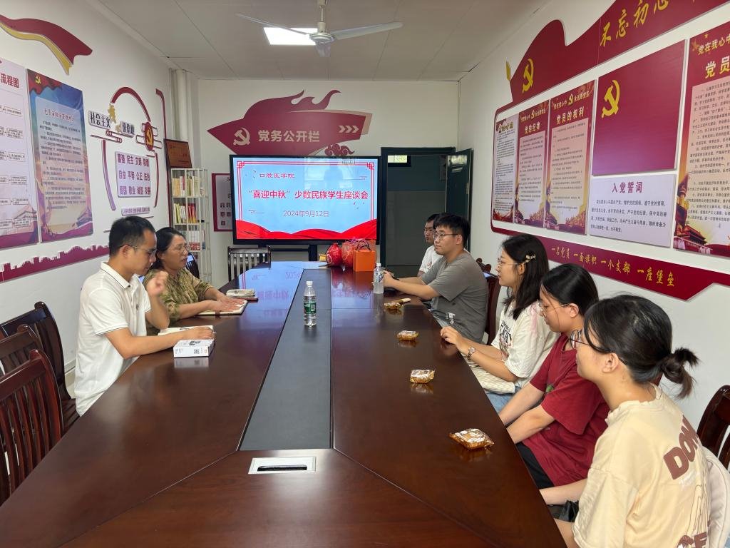 为深入学习贯彻党的二十大精神和习近平总书记关于加强和改进民族宗教工作的重要论述,进一步铸牢中华民族共同体意识,加强与少数民族学生的沟通和交流。在中秋佳节来临之际,bat365官方网站于9月13日下午组织召开了“迎中秋”少数民族学生座谈会。bat365官方网站综合办主任甘梅香、专职辅导员兰勇强及学院少数民族学生代表参加此次座谈会。