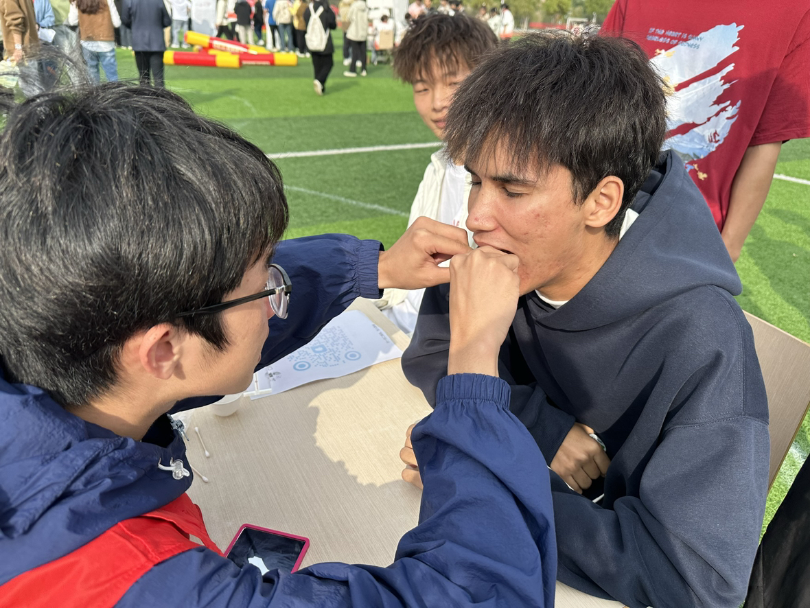 活动现场,同学们一边了解bat365官方网站一院一品品牌成果一边参与现场游戏。口腔义诊区手工蛋挞香气诱人,志愿者免费为同学们做口腔检查;口腔知识问答区设置互动答题游戏,引导同学们关注口腔健康;品茶区茶香袅袅,大家共同品味茶香、慢饮细酌,以茶为媒,以茶会友;漆扇DIY区当扇面和大漆相遇,随即漂染出独一无二的扇面,或清新淡雅,或明艳绚丽,尽显水墨之美。活动现场热闹非凡,吸引了众多师生的驻足观看、热情参与。