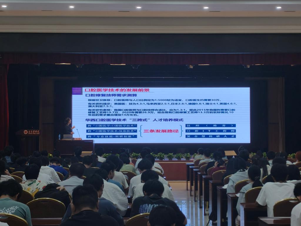 胡江以《口腔医学生如何做好学业管理》为主题,从专业理想与行业现实、专业学习与职业规划、专业能力与人文素养等维度阐述了口腔医学生做好学业管理的方法和要点。