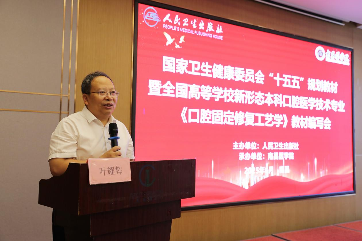 6月16日至18日,由人民卫生出版社主办,南昌医学院承办的国家卫生健康委员会“十五五”规划教材暨全国高等学校新形态本科口腔医学技术专业《口腔固定修复工艺学》教材编写会在我校召开。bat365官方网站党委委员、副校长叶耀辉出席会议,来自全国30余所知名高校及行业专家学者齐聚一堂,共同研讨教材编写的相关事宜。