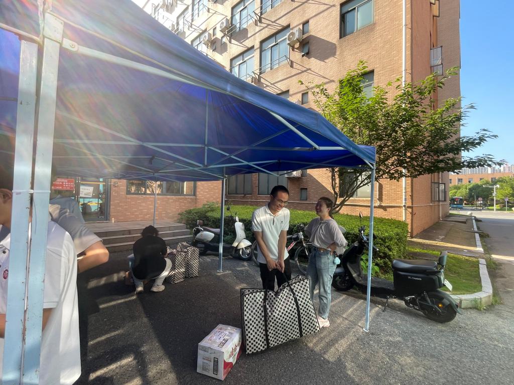 搬迁当日,学院老师全程协调调度,志愿者主动协助学生搬运行李、核对物品清单。整个搬迁现场虽繁忙却有条不紊,学生按通知时间分批抵达,即到即搬,高效流转,最大程度提高了搬迁效率。