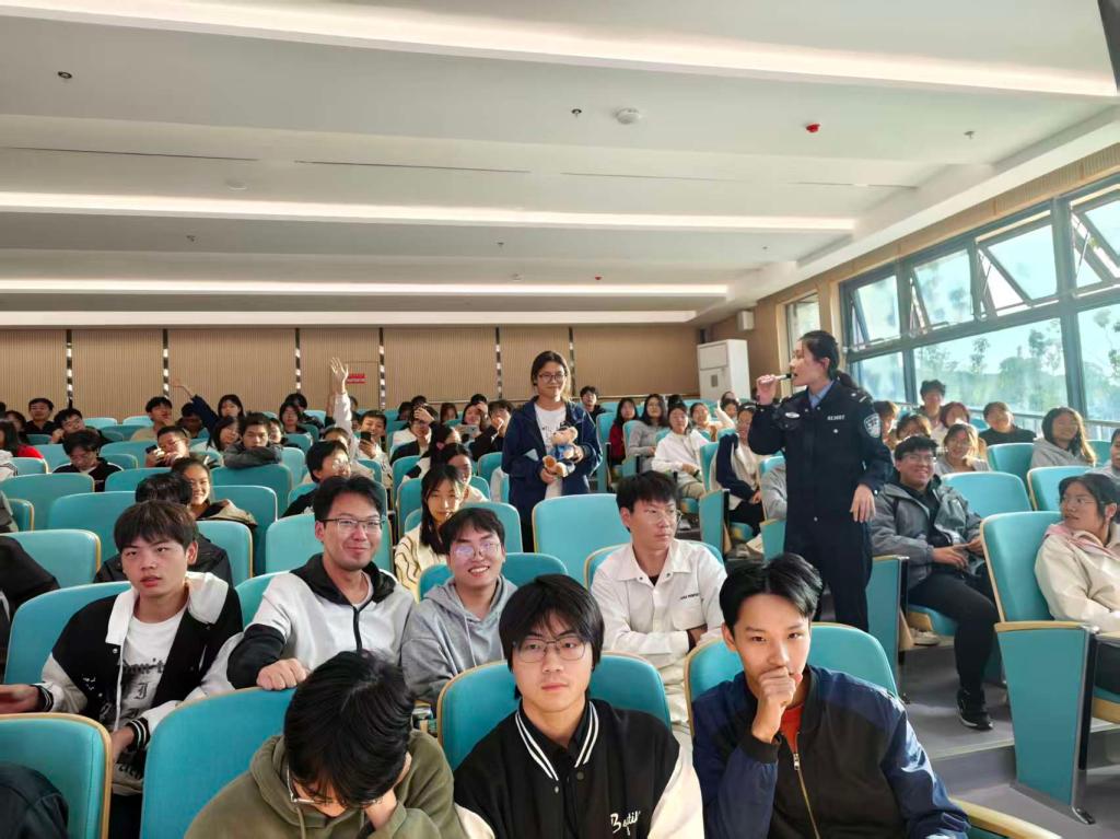 活动中,徐警官用生动鲜活的案例、通俗易懂的语言,为我们深度剖析了校园诈骗的常见类型、最新套路,从 “识别诈骗陷阱” 到 “遭遇诈骗后如何应对”,再到 “传递防诈知识”,每一个知识点都极具针对性和实用性,让同学们对校园诈骗有了更清晰的认知,也掌握了更多守护自身财产安全的 “硬本领”。