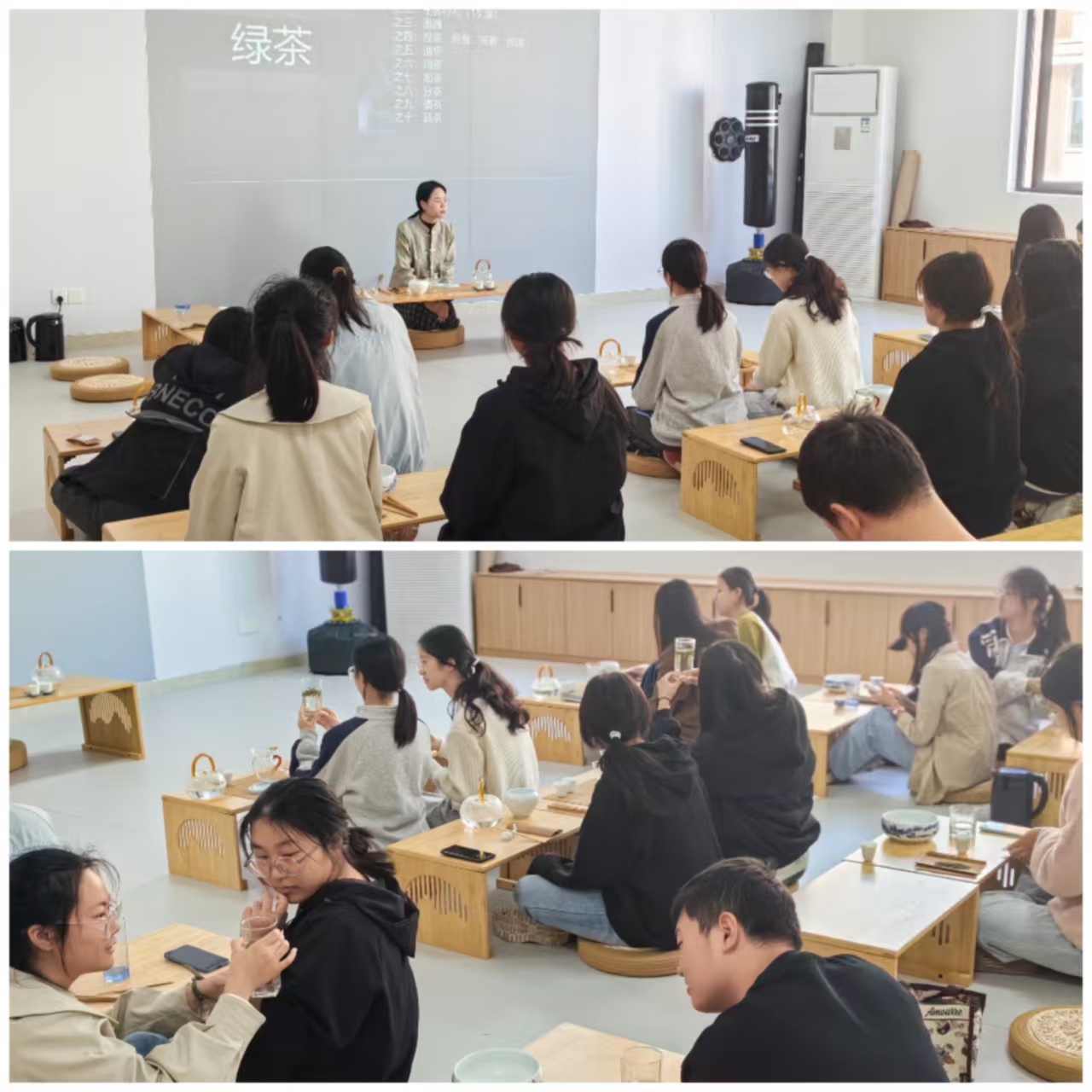 立冬之际,茶艺师讲解 “立冬饮暖茶” 的养生习俗、茶叶分类及茶具使用方法,学员们亲身参与温杯、醒茶、冲泡等实操环节,并在 “茶话分享” 中交流传统文化感悟。