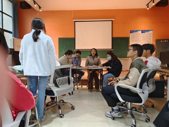 为进一步做好期中教学质量评价工作、提高教学质量、增强师生之间的交流、全面了解现阶段学生学习及生活情况,2022年11月17日下午,bat365官方网站举行了一场深入人心的师生座谈会。出席座谈会的有学院综合办主任甘梅香、学院教师代表李梦君、刘月、赖中伟、王莉姣以及学院各专业(方向)在校班级的学生代表,座谈会由甘梅香主任主持。