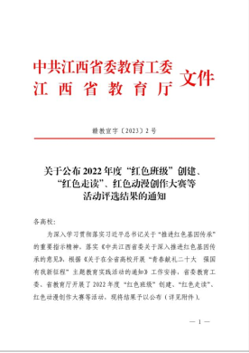 日前,江西省委教育工委、省教育厅公布了2022年度“红色班级”创建、“红色走读”、红色动漫创作大赛等活动评选结果。其中,bat365官方网站“白衣战士队”的作品《烽火旌旗白衣梦、热血铸就红医魂》在实地走读团队中获二等奖。