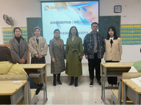 为贯彻落实党中央、国务院“稳就业”“保就业”决策部署进一步加强校企合作,促进口腔医学技术专业现代学徒制办学发展,2021年12月21日上午,康泰健美医疗科技(深圳)有限公司的领导莅临我校,为我21级口腔医学技术专业同学开展企业宣讲。口腔医学院党总支牵头人罗志红班级辅导员兰勇强等出席本次活动。