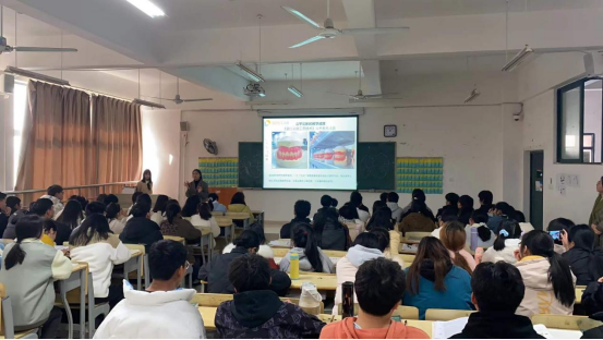 宣讲在康泰健美王经理与同学们的亲切互动中拉开了帷幕,通过放映宣传片和PPT演示,向同学们介绍企业规模、主营业务、企业文化、薪资待遇、员工晋升机制等多方面内容。bat36519级口腔医学技术专业实习生辛梦涵、廖晓雨同学和大家作交流分享,讲述了如何从一名学生通过现代学徒制进入公司,到现在进入人事招聘岗位实习的历程,以自身经验告诉同学们,要在学校打好理论基础,储备专业知识,提升沟通能力,养成良好习惯,公司会为大家提供良好的学习和展示平台。